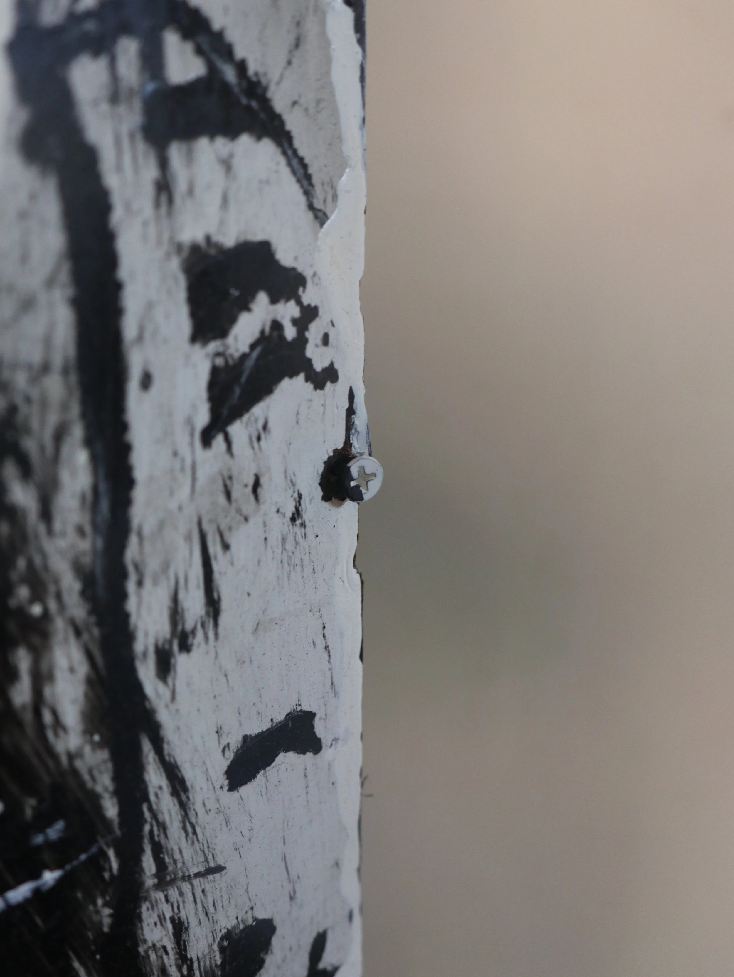lacquer, plastic, nails on wood