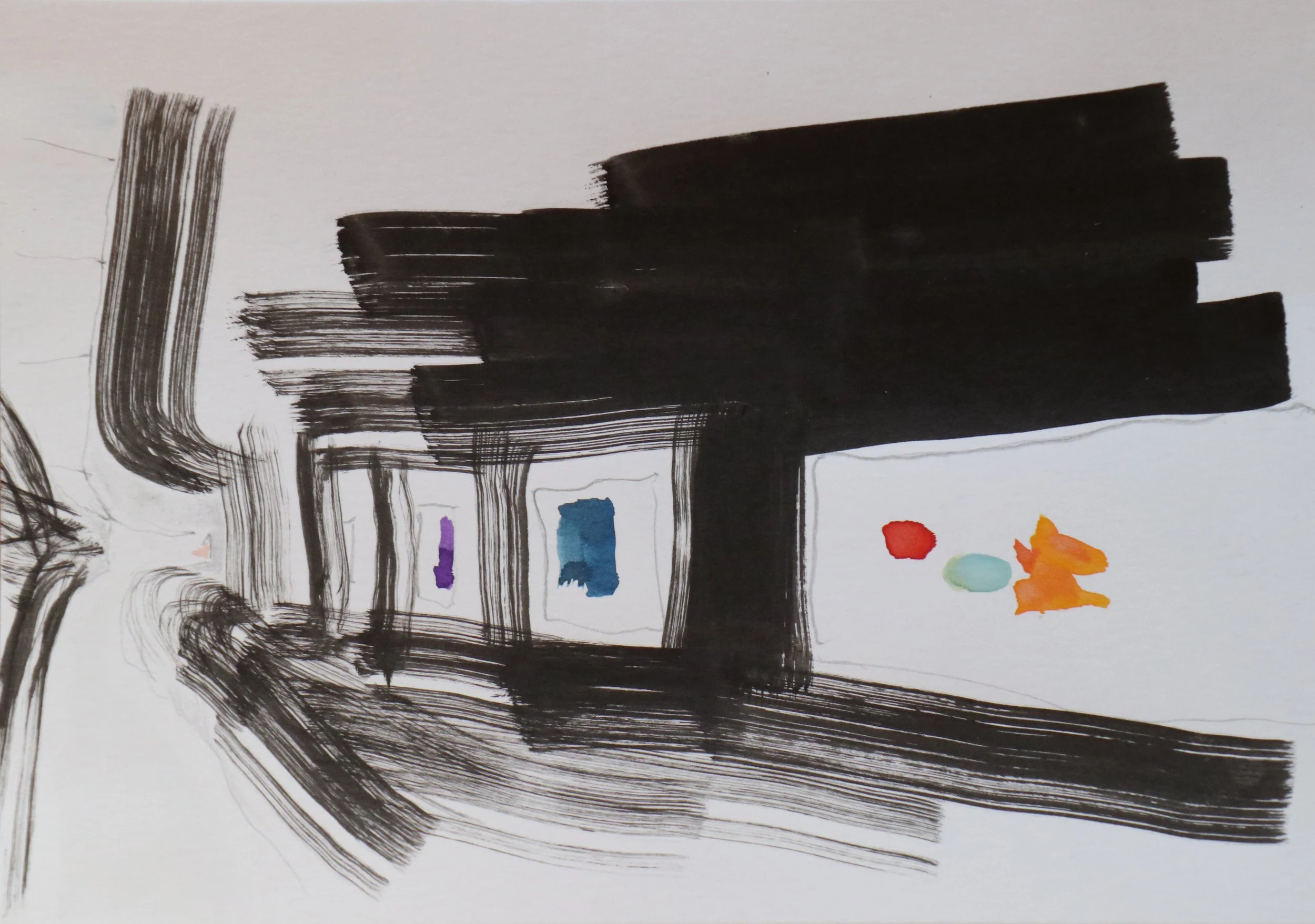 watercolour, black ink, graphite on cotton paper