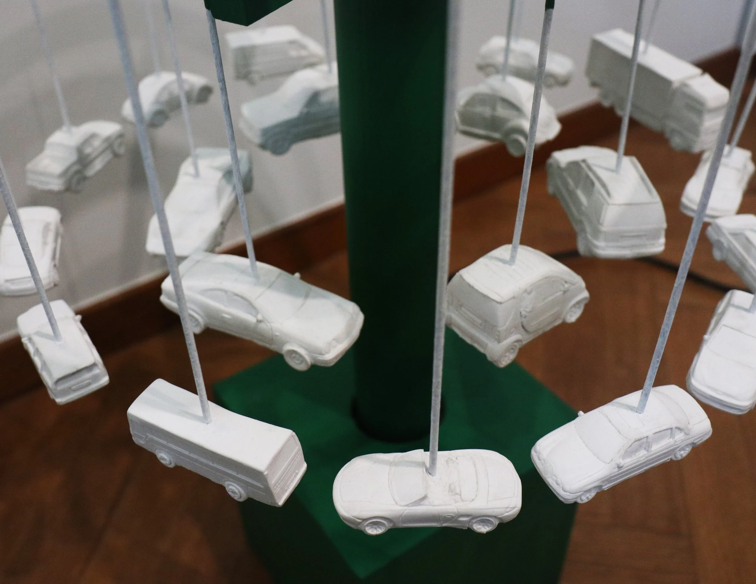 plastic, lacquer on wood, motors, wire