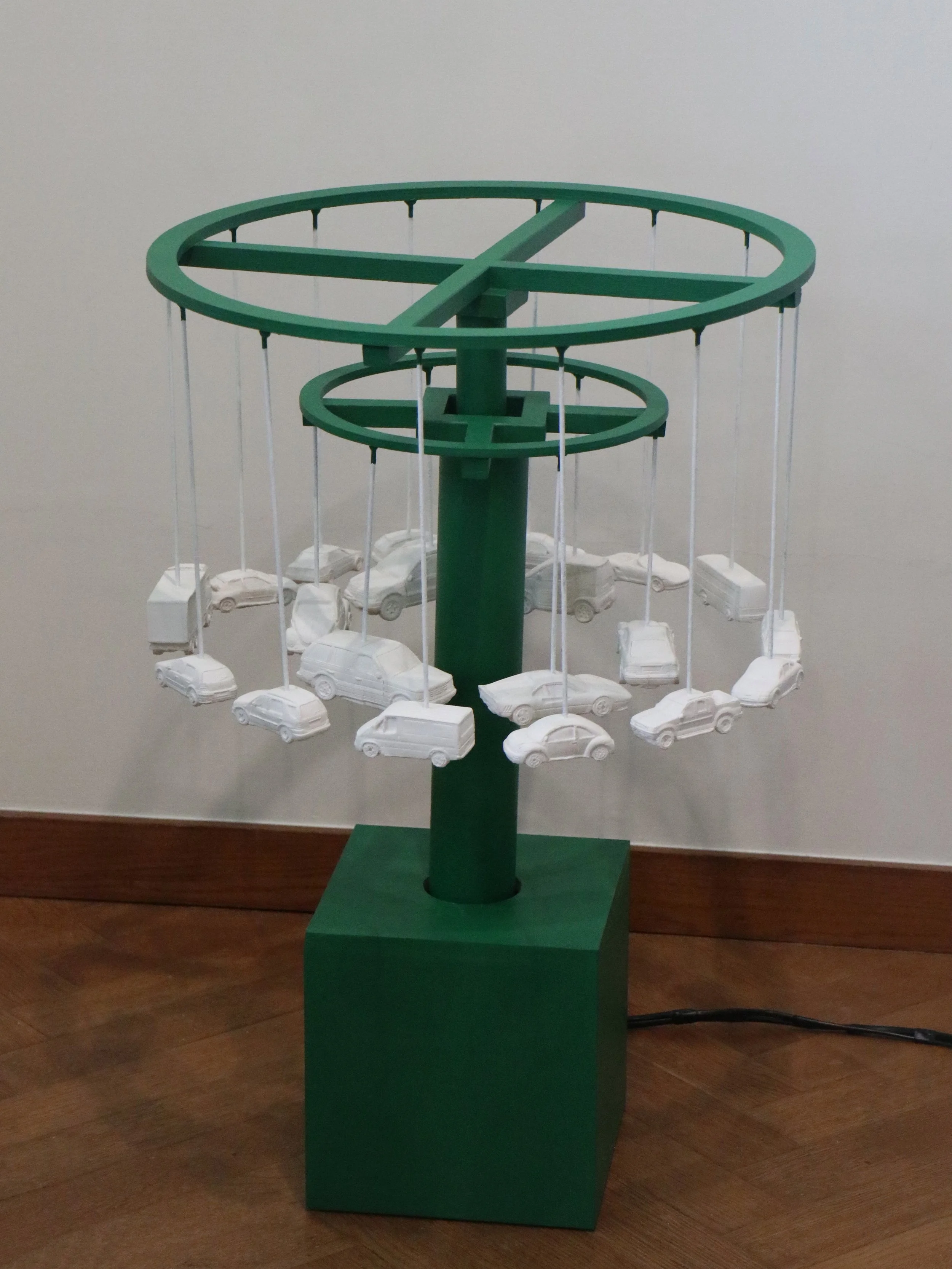 acrylic paint on plastic, wood, motor, light, music